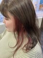イヤリングカラーのデザインカラースタイルです。耳にかけてちょうど見える部分をブリーチで一度抜いて、その後はピンクカラーをのせました(^^)全体ではなく部分なので、ブリーチ初挑戦したい方、おすすめです。ぜひお試しください☆