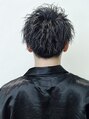刈り上げツーブロックを高めに施した前下がりマッシュにツイストスパイラルパーマをかけてあります。