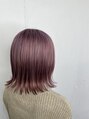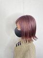 切りっぱなしのボブにカット後ブリーチしてからピンクパープルをオン