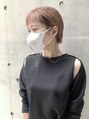 ショートボブとハイトーンのミルクティーベージュで大人な雰囲気にオイルやバームなどでピタッとまとめるスタイリングがおすすめ(担当 ゆか)