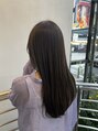 ベージュカラーをベースに、ほんのり薄紫のアクセントが効いたラベンダーをプラスしたラベージュカラー。髪質改善Aujuaトリートメントのクエンチ&スムースで内側うるうる、外側さらさらなハイブリットヘアに♪