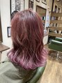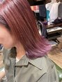ブリーチを2回行い、毛先の裾カラーも加えたピンクベージュベースからのパープル。ブリーチ剤はファイバープレックスを使用することにより、ダメージを98%カットし、イルミナカラーでさらにツヤを出すことでブリーチ2回でもキレイな仕上がりに☆