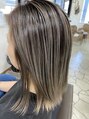 全体ブリーチから作るデザインカラー、シャドールーツです。根元を少し暗めのグラデーションに仕上げて、コントラストがあるデザインに仕上げます。とても素敵です◎