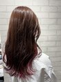 インナーのブリーチのみで表面はグレイピンクインナーはカラーミューズのピンクでビビットなお色味に!表面とインナーを同じお色味でお染めするのも可愛いです!!