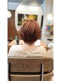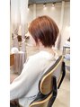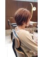 軽めのショートスタイル、耳前のもみ上げ部分を残して小顔効果を出しています。