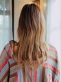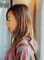 無造作な毛先の動きがポイントのミディアムロングスタイル。縦長なシルエットになるようにレイヤーを入れているので、動くと揺れる軽い仕上がりに。カラーは透明感のあるベージュ系で、細かくハイライトを入れて立体感をプラス。〔小岩/小岩駅〕