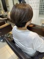 髪質改善・白髪をハイライトのようになじませてカラーしています。今まで白髪染めをされていた方は、ハイライトカラーで、白髪をぼかしていきます。立体的なスタイルと、白髪を活かしていきますのでオススメです。白髪をしっかり染めたい方には不向きです。