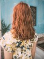 中間から毛先にかけて少し強めのカールスタイルで動きと軽さのあるロングヘアです。カラーは明るめのアプリコットブラウンで女性らしい柔らかい印象にしてくれるカラーにしました★