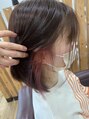 インナーカラーレッドピンク♪こっそりおしゃれをしたい方におすすめのインナーカラーです!表面も暖色系にしました☆段のないワンレングスでまとまりの良いスタイルです!