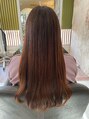 縮毛矯正のダメージを最小限に抑える為に全工程にトリートメントを使用してます。根元、中間、顔まわり、前髪は時間差で塗り、薬を塗り分けダメージを抑えています。毛先はパーマが残っているのでトリートメントとカットでパーマのもちを良くしました。