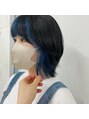 フェイスフレーミングカラーでターコイズブルー雰囲気変わってかわいいです福岡 天神 今泉 薬院 福岡美容室 天神美容室 今泉美容室 薬院美容室 ブリーチカラー フェイスフレーミング ボブ デザインカラー