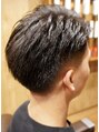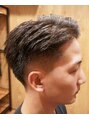 まわりは控えめにスキンフェードカットを施しました。トップは少し長めのツーブロック風になっていますのでスタイリングしたときのボリュームが魅力になっています。硬毛やクセが強い毛質の方にもオススメです。