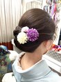結婚式やお宮参りなどにおススメのスタイルです。髪飾りを変えれば、色留袖や黒留袖にもよく合います。