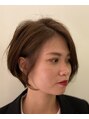 シンプルでかっこいい、前下がりのショートボブです。襟足が浮きやすい方も綺麗に見えるようにカットします。カラーは、ハイライトにナチュラルなアッシュブラウン。柔らかさとかっこよさを兼ね備えたショートボブです。