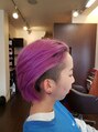 サイドからネープまでをツーブロック、マッシュベースでカットしています。ブリーチを4回後、カラーバター。