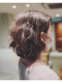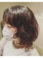 強めのパーマでふんわりと可愛いボブスタイル♪おでこちょい見せで甘くになりすぎないように☆