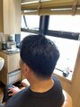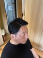 自然に白髪染めしました。白髪が少し減るだけで若々しく見えます。最近は暑いので横をツーブロックでとり、裾をすっきり仕上げました!