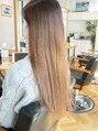 - ケアブリーチを使用したハイライトでこんな感じになります。イルミナカラーも綺麗でツヤツヤです。