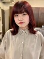 △ブリーチなしチェリーレッドぱっつん前髪レイヤーカット