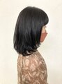 ミディアムなボブスタイルにレイヤーを入れて、毛先に動きがでるようにカット。カラーは落ち着いたブルーブラックでオイルカラーを使用。より艶やかな髪質に。