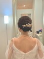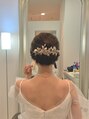 ふんわりしすぎず、流れは出して下めシニヨンでまとめてチュールスリーブに合わせて甘くなりすぎずに