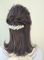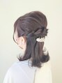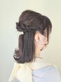 ハーフアップスタイルです。ストレートの外ハネで清楚なイメージを演出しました。顔まわりも触角を作って小顔効果をアップサイドは縄編みです。