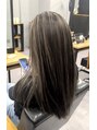 フルブリーチ履歴からハイライトデザインに!ブリーチしてあるので、ハイライト部分は弱めのブリーチでダメージレスに。