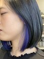 元々ブリーチ有りのインナーカラーを入れられていたので、再度ブリーチをしてからブルーを入れました!また全体カラーは、ブルーのインナーカラーにより馴染むブルーブラックを入れました♪