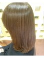 梅雨に便利な優しい縮毛矯正をベースにしたミディアムスタイルです。