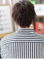 【スタイルは★ブックマーク★が便利】くせ毛風パーマでやわらかソフトな雰囲気に仕上げたアシンメトリーショート。ワイルドアップバングでぐっと男らしくセクシーに。多毛の方はツーブロックや刈り上げで毛量調整がGOOD。(メイク担当:川口店 岩淵)