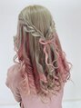 三つ編みリボンヘアアレンジ/インナーカラー/エクステ