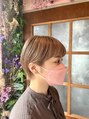 後ろはスッキリ短く前髪から顔まわりはマッシュフォルムで耳にかけれるサイドの長さは残したスタイルです。カラーは一度ブリーチをして優しいミルクティーベージュにしています。【藤沢駅/藤沢】
