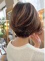 襟足をタイトにスッキリ感を出したショートボブ。アクセサリーや耳にかけた時にも素敵なデザインです。扱いやすくスタイリングなしでも決まる形で幅広い方にに合わせやすいショートスタイルです。ハイライトによる立体感も素敵です♯ハイライト