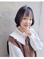 ボブスタイルのトップにレイヤーを入れたくびれボブスタイル カラーは室内で見るとブラック、明るいところで見るとブルーっぽいブルーブラック