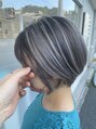 ハイライト シルバーアッシュ ボブ 3Dカラー 小顔