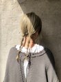 ハイトーンカラーでヘアアレンジもおしゃれに。三つ編みをあえてくずさずにキュッとスタイリッシュに◎