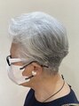 脱白髪染め。を実践して3年程経ちました。すっかり、ご本人のお持ちのカラー条件です。なんとも言えないグラデーションが素敵です。素敵なオシャレをされていて、メガネのツルのところも白色で合わせました。