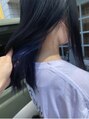 暗くしないといけないけどおしゃれを楽しみたいお客さまベースはブルーブラックで透明感ある暗めの色にしてインナーをブルーに染めました!