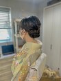 肩につかないくらいの長さでもアップスタイルも可能です♪ルーズにまとめたアップスタイル