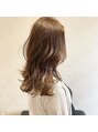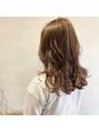 透明感のあるアッシュ系カラーに仕上げたロングヘアを、巻き髪にしてオシャレにアレンジしました。