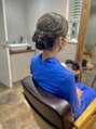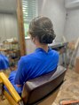 TOPはツヤっと仕上げたシニヨンアレンジ。