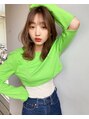 鎖骨下で切りっぱなしにカットする大人カジュアル、かわいいスタイル柔らかく見せる為にパーマでニュアンスをつけるのがオススメ☆明るめのカラーでより透明感をだして軽さのあるヘアスタイルに^^前髪も自然におろして決まるのでセットが楽です!