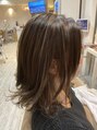表面だけにレイヤーをいれて、しっかりと重さもありつつカラーリングで、動きのある感じをだすと、重たすぎる印象もなくなり巻いた時に動きもわかりやすく、アレンジしてもきわだちます。