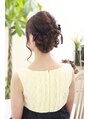 顏周りに後れ毛を残して、両サイドから編み込みふんわりまとめました♪