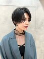 センターパート×ショートパーマ