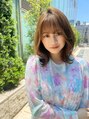 伸ばしかけでもより小顔に見える外ハネスタイル!!シースルーバングで、大人かわいい感じをプラス☆ベージュカラーでより髪質を柔らかくみせています。ひし形シルエットでより小顔に!!