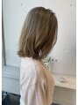 ハイブリーチでコントロールしたベースに[光色]イルミナカラー/クリアなベージュ色をミックスし、芯のある色味と透明感を楽しめるスタイルに整えました。
