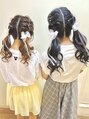 お揃いの 編み込み × ハート × ツインテール♪ お互い推しカラーもばっちりです!! パールやリボンを使って、可愛く華やかに** 双子コーデにもオススメです◎