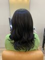 暗髪さんに大人気のブルーブラック◎髪色が厳しくても挑戦しやすいカラーです!カットは低めのレイヤーを入れてナチュラルかつ巻いた時に動きが出るように☆.*サイドバングもたっぷり作ったので顔まわりも華やかに!