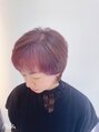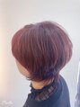 フロントマッシュベースからバックは丸さを崩さないようにレイヤーカット。耳後ろのディスコネがポイントです。インナーカラーはフロント~フェイスラインにパープルガーネットを入れました。